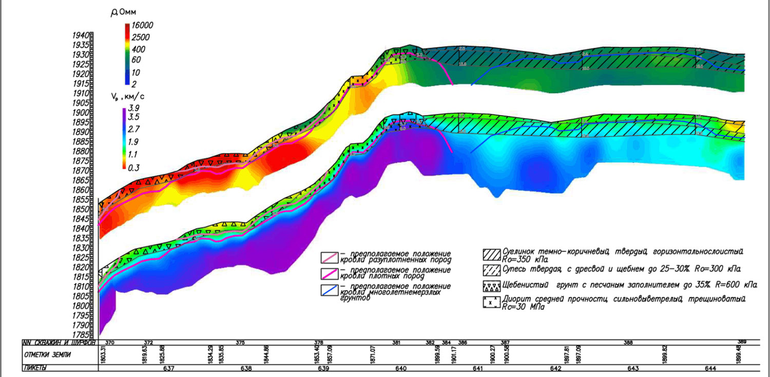 Определение кровли скальных пород и выделение зон развития островной вечной мерзлоты в рамках проектирования МГ